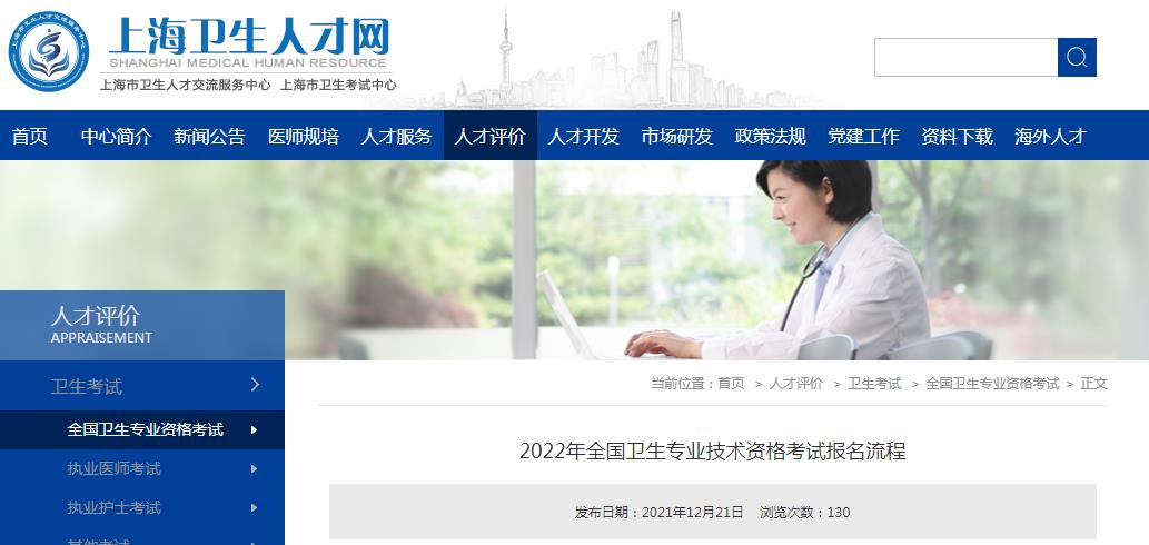 導(dǎo)讀:上海衛(wèi)生人才網(wǎng)《2022年全國衛(wèi)生專業(yè)技術(shù)資格考試報名流程》,2022年度上海市衛(wèi)生專業(yè)技術(shù)資格考試網(wǎng)上報名時間自2021年12月20日起至2021年12月30日止,網(wǎng)上繳費時間2022年2月15日起至2022年2月25日,報名流程如下: