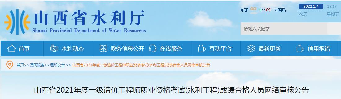 山西省2021年度一級(jí)造價(jià)工程師職業(yè)資格考試(水利工程)成績(jī)合格人員網(wǎng)絡(luò)審核公告