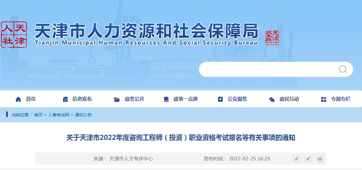 關(guān)于天津市2022年度咨詢工程師(投資)職業(yè)資格考試報名等有關(guān)事項的通知