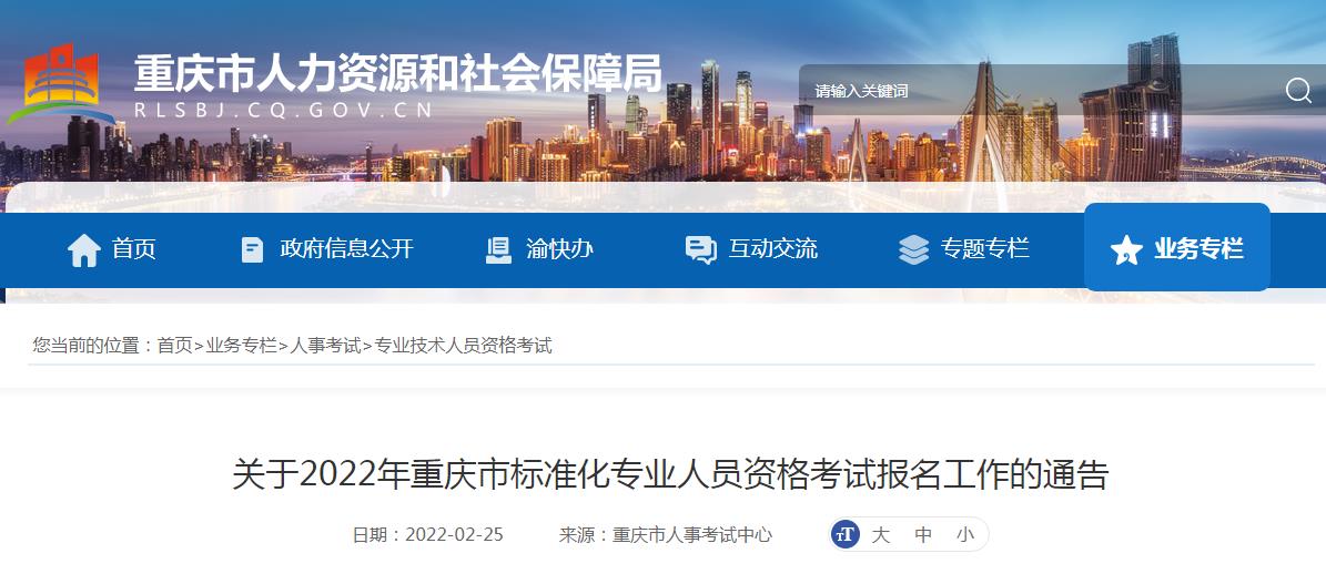 關(guān)于2022年重慶市標(biāo)準(zhǔn)化專業(yè)人員資格考試報(bào)名工作的通告