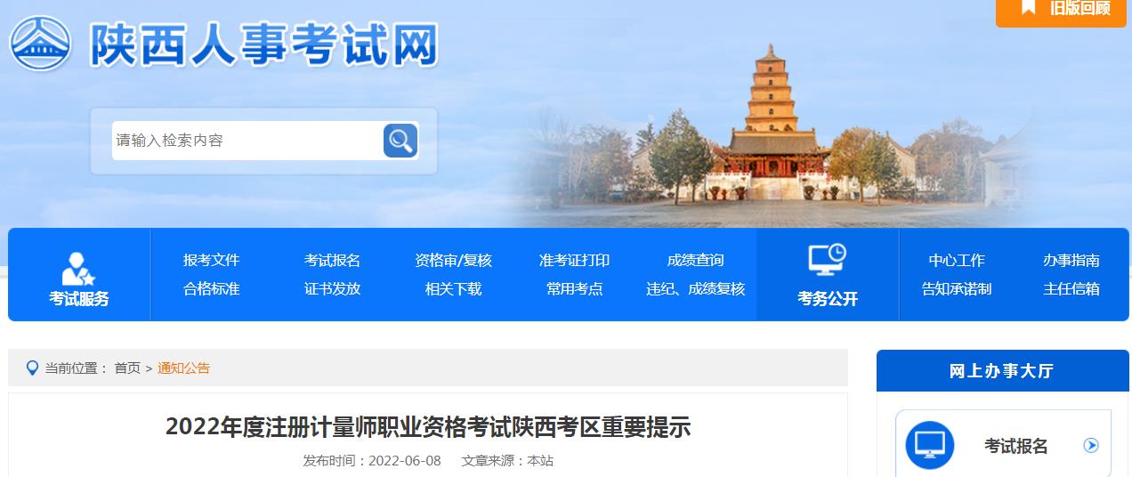 2022年度注冊計量師職業(yè)資格考試陜西考區(qū)重要提示