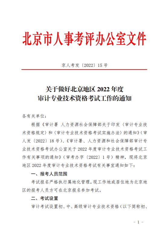 關(guān)于做好北京地區(qū)2022年度審計專業(yè)技術(shù)資格考試工作的通知