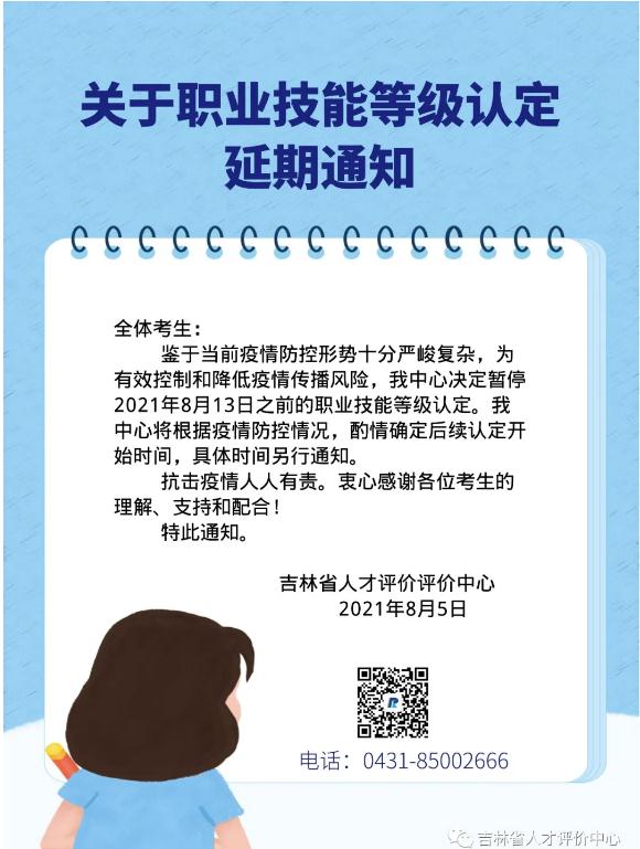 鑒于當(dāng)前疫情防控形勢(shì)十分嚴(yán)峻復(fù)雜,為有效控制和降低疫情傳播風(fēng)險(xiǎn),我中心決定暫停2021年8月13日之前的職業(yè)技能等級(jí)認(rèn)定。我中心將根據(jù)疫情防控情況,酌情確定后續(xù)認(rèn)定開始時(shí)間,具體時(shí)間另行通知。