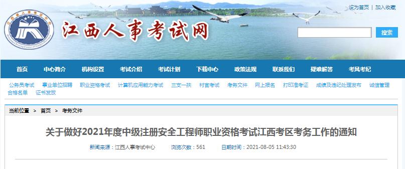 關(guān)于做好2021年度中級注冊安全工程師職業(yè)資格考試江西考區(qū)考務(wù)工作的通知