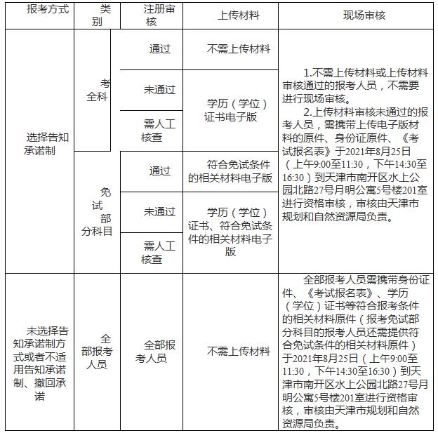 備注:(1)需要上傳材料的報(bào)考人員于2021年8月18日9:00至8月24日16:00登錄全國(guó)專業(yè)技術(shù)人員資格考試報(bào)名服務(wù)平臺(tái)上傳相關(guān)資料電子版,審核部門將于2021年8月20日9:00開(kāi)始對(duì)上傳材料進(jìn)行審核。