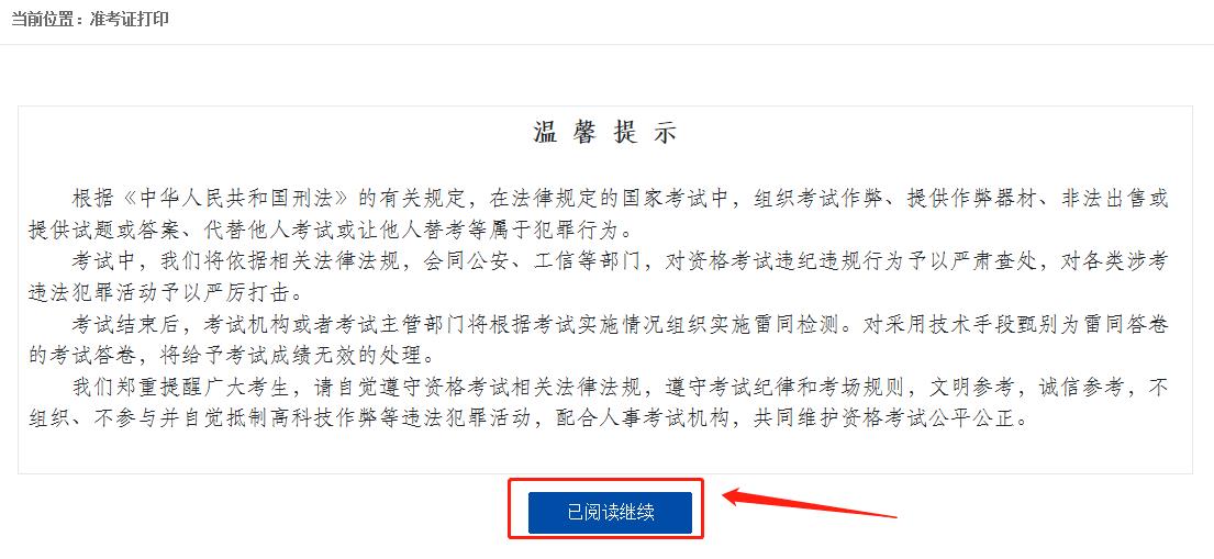 3、在提示頁(yè)面下方點(diǎn)擊“已閱讀繼續(xù)”,進(jìn)入登錄頁(yè)面。
