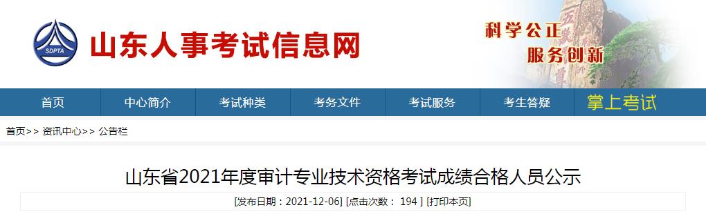 山東省2021年度審計專業(yè)技術資格考試成績合格人員公示