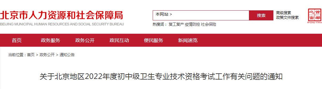 關(guān)于北京地區(qū)2022年度初中級(jí)衛(wèi)生專業(yè)技術(shù)資格考試工作有關(guān)問題的通知