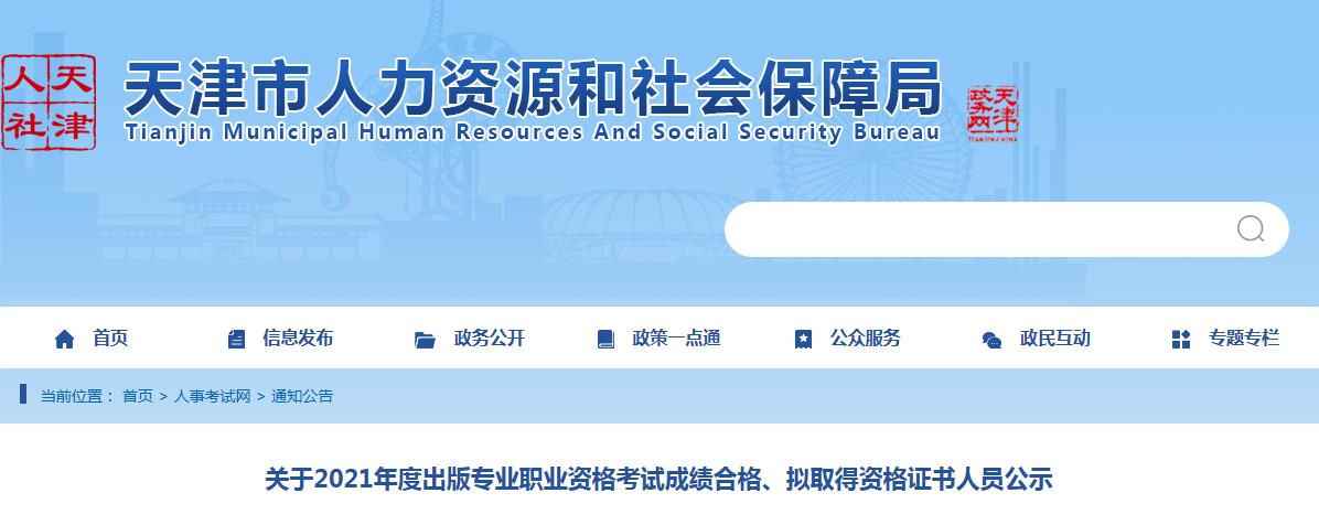 小貼士:天津市2021年度出版專業(yè)職業(yè)資格考試成績合格、擬取得資格證書人員名單請復(fù)制原文地址下載附件查看!