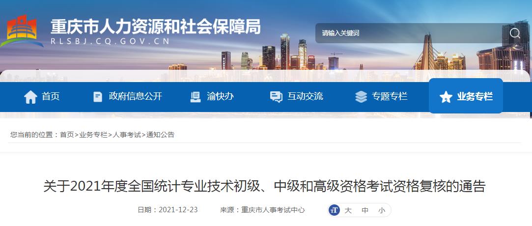 關(guān)于2021年度全國統(tǒng)計(jì)專業(yè)技術(shù)初級(jí)、中級(jí)和高級(jí)資格考試資格復(fù)核的通告
