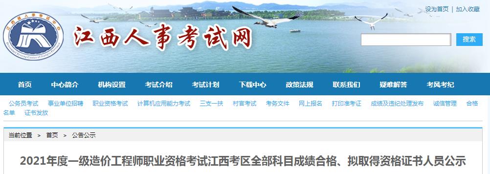 2021年度一級(jí)造價(jià)工程師職業(yè)資格考試江西考區(qū)全部科目成績(jī)合格、擬取得資格證書人員公示