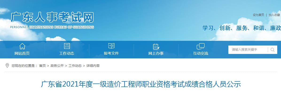 廣東省2021年度一級(jí)造價(jià)工程師職業(yè)資格考試成績(jī)合格人員公示