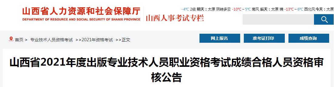 山西省2021年度出版專(zhuān)業(yè)技術(shù)人員職業(yè)資格考試成績(jī)合格人員資格審核公告