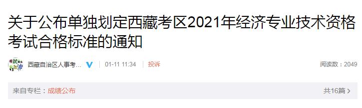 關(guān)于公布單獨(dú)劃定西藏考區(qū)2021年經(jīng)濟(jì)專業(yè)技術(shù)資格考試合格標(biāo)準(zhǔn)的通知
