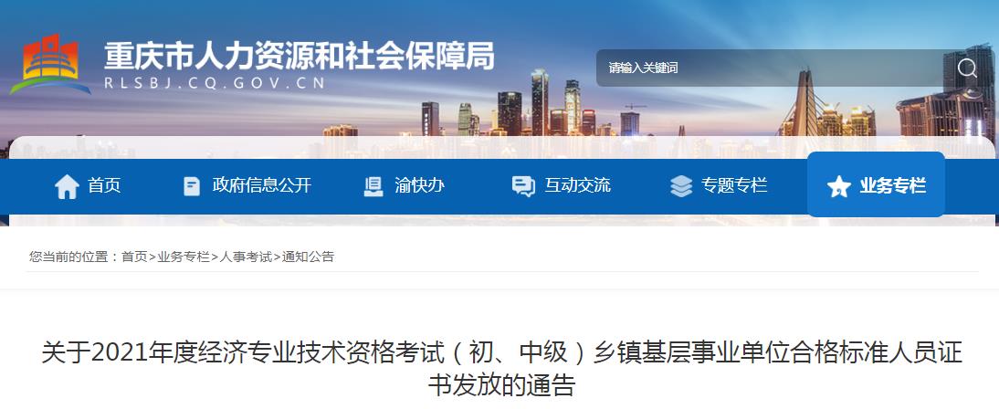 關(guān)于2021年度經(jīng)濟(jì)專業(yè)技術(shù)資格考試(初、中級)鄉(xiāng)鎮(zhèn)基層事業(yè)單位合格標(biāo)準(zhǔn)人員證書發(fā)放的通告