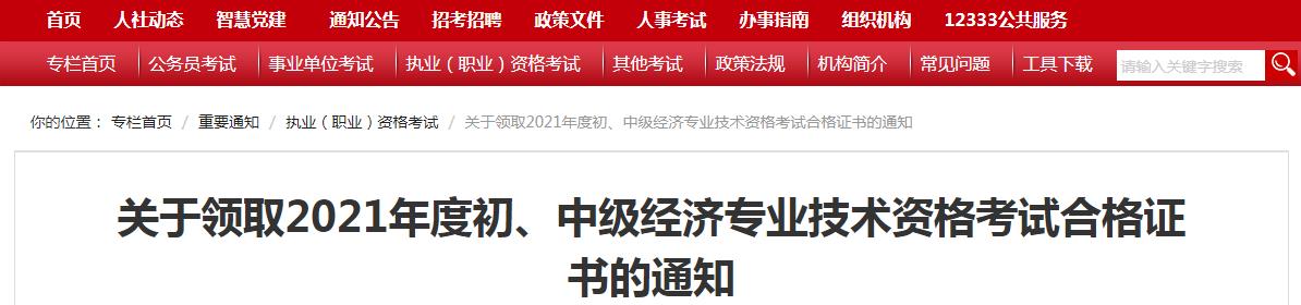 關(guān)于領(lǐng)取2021年度初、中級(jí)經(jīng)濟(jì)專業(yè)技術(shù)資格考試合格證書的通知