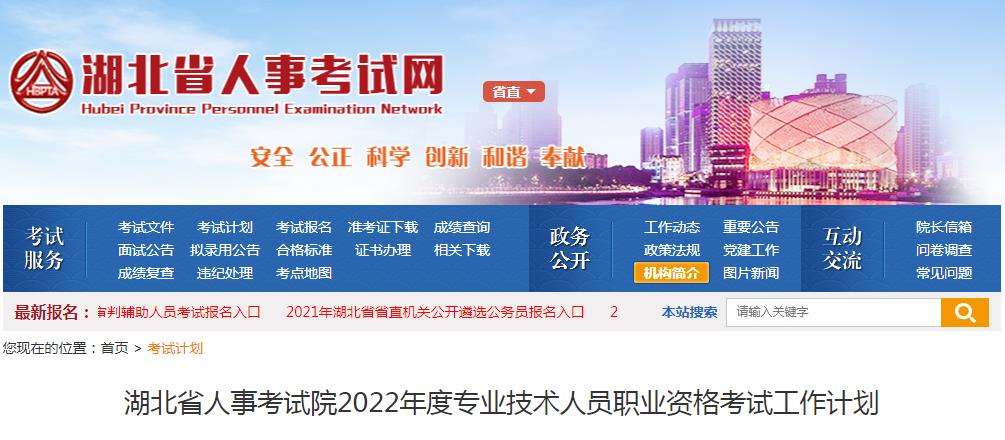 湖北省人事考試院2022年度專(zhuān)業(yè)技術(shù)人員職業(yè)資格考試工作計(jì)劃