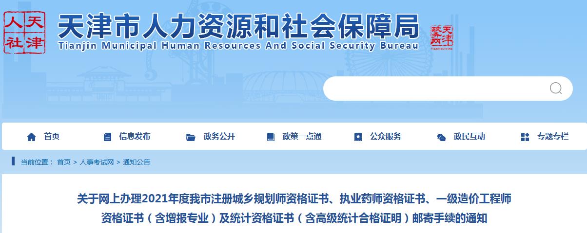 關(guān)于網(wǎng)上辦理2021年度我市注冊(cè)城鄉(xiāng)規(guī)劃師資格證書、執(zhí)業(yè)藥師資格證書、一級(jí)造價(jià)工程師資格證書(含增報(bào)專業(yè))及統(tǒng)計(jì)資格證書(含高級(jí)統(tǒng)計(jì)合格證明)郵寄手續(xù)的通知