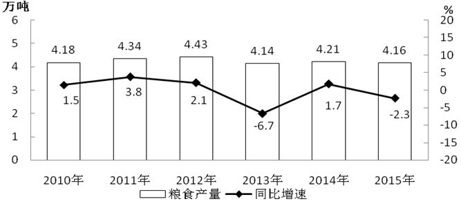 2010—2015年某市糧食產(chǎn)量及其增速