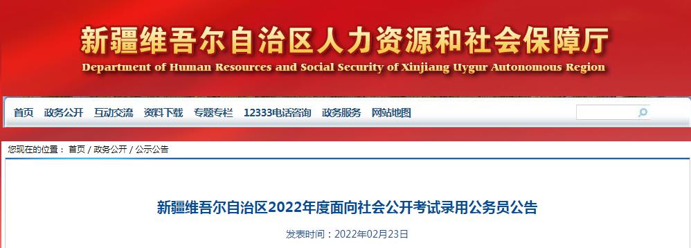 新疆維吾爾自治區(qū)2022年度面向社會(huì)公開(kāi)考試錄用公務(wù)員公告