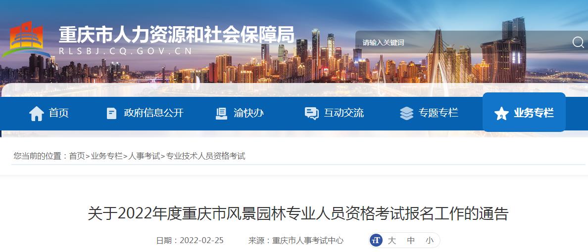 關(guān)于2022年度重慶市風(fēng)景園林專(zhuān)業(yè)人員資格考試報(bào)名工作的通告
