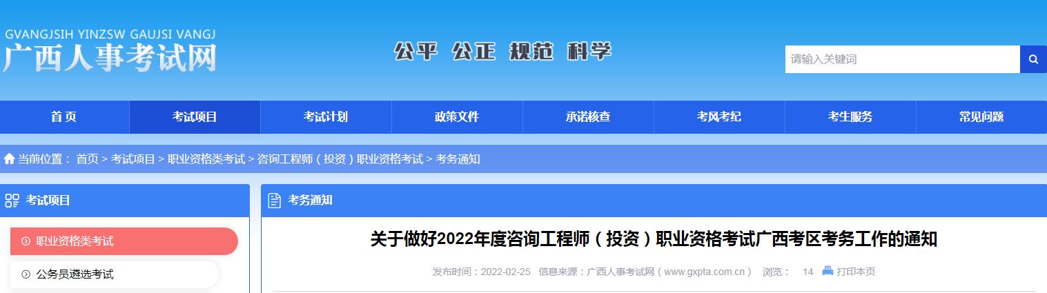 關于做好2022年度咨詢工程師(投資)職業(yè)資格考試廣西考區(qū)考務工作的通知