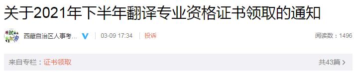西藏考區(qū)2021年度翻譯專業(yè)資格證書已開始發(fā)放。請符合條件的考生,于3月11日至3月18日(工作日上午09:30—13:00,下午15:30—18:00)選擇以下方式之一領取證書。