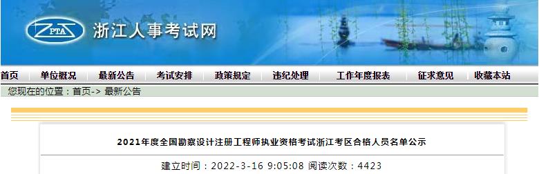 根據(jù)《關(guān)于2021年度全國勘察設(shè)計(jì)注冊工程師執(zhí)業(yè)資格考試有關(guān)工作的通知》(浙設(shè)執(zhí)委〔2021〕2號(hào))文件規(guī)定,現(xiàn)將2021年度合格人員名單予以公示,公示時(shí)間10個(gè)工作日(2022年3月16日至29 日止)。