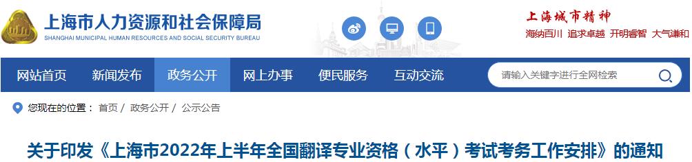 上海市2022年上半年全國翻譯專業(yè)資格(水平)考試考務(wù)工作安排