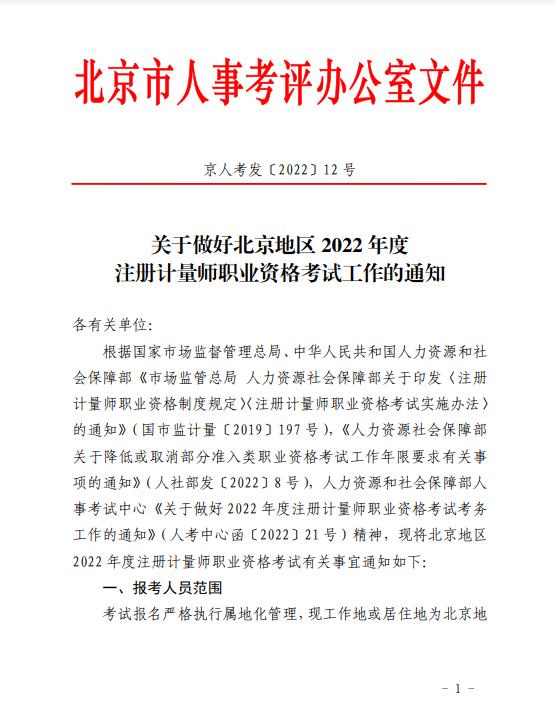 關于做好北京地區(qū)2022年度注冊計量師職業(yè)資格考試工作的通知