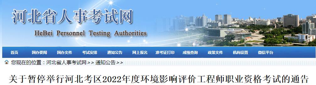 關于暫停舉行河北考區(qū)2022年度環(huán)境影響評價工程師職業(yè)資格考試的通告