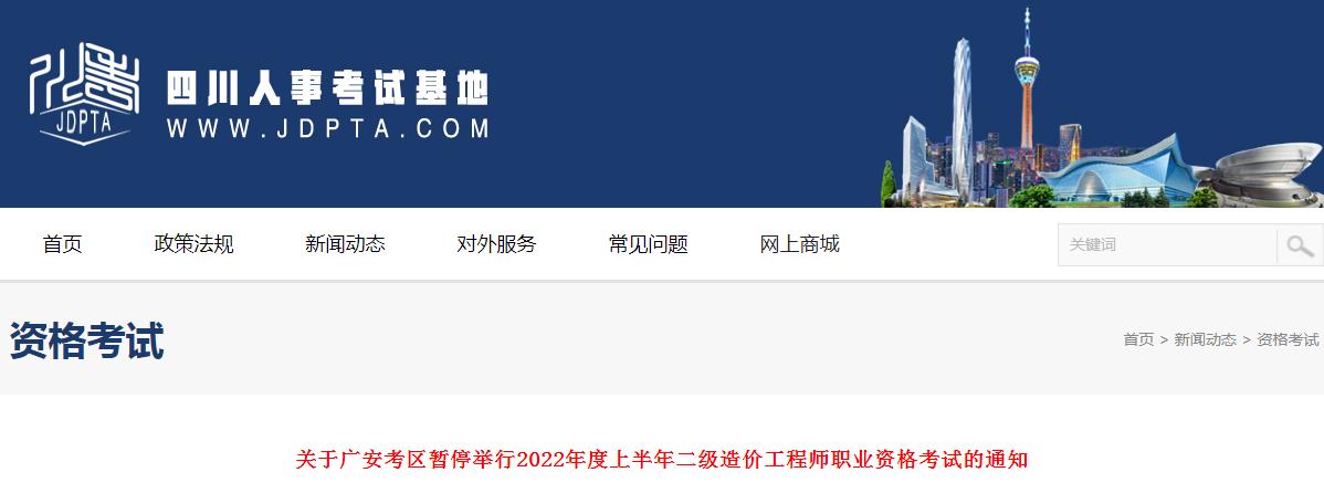 關(guān)于廣安考區(qū)暫停舉行2022年度上半年二級造價工程師職業(yè)資格考試的通知