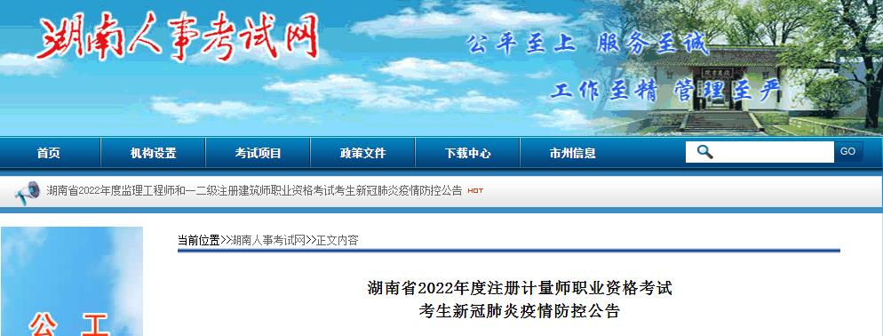 湖南省2022年度注冊計量師職業(yè)資格考試考生新冠肺炎疫情防控公告