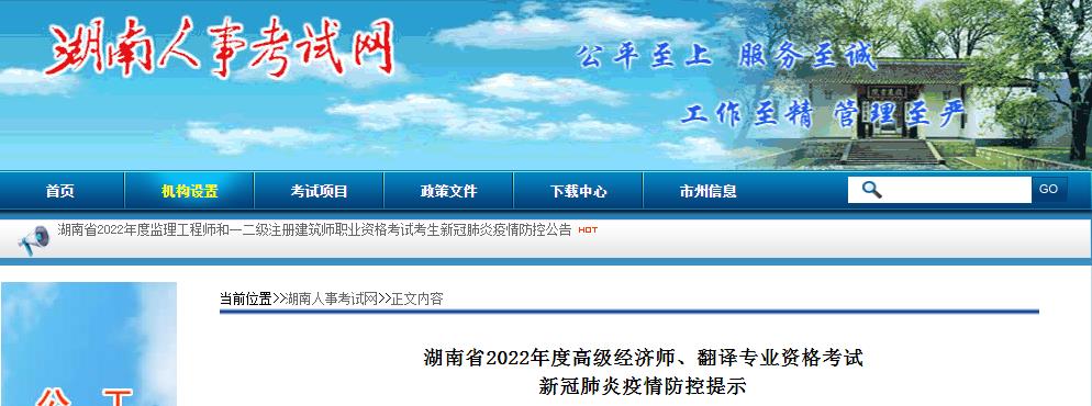 湖南省2022年度高級(jí)經(jīng)濟(jì)師、翻譯專業(yè)資格考試新冠肺炎疫情防控提示