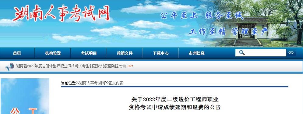 關(guān)于2022年度二級造價工程師職業(yè)資格考試申請成績延期和退費(fèi)的公告