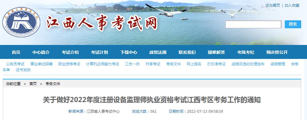 關于做好2022年度注冊設備監(jiān)理師執(zhí)業(yè)資格考試江西考區(qū)考務工作的通知