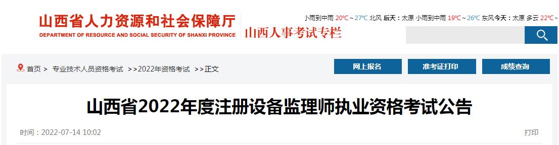 山西省2022年度注冊設備監(jiān)理師執(zhí)業(yè)資格考試公告