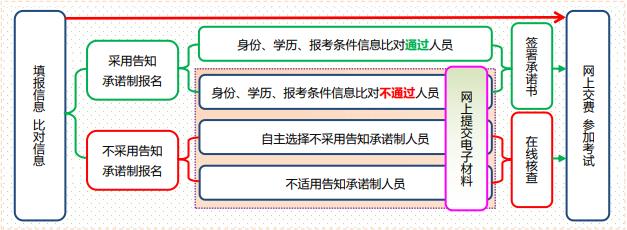 不采用告知承諾制方式或者不適用告知承諾制辦理報考事項的,報考人員應在線提交相關材料,由考試組織機構核查。