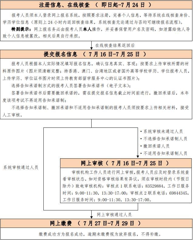 1.提交報名信息時間為2022年7月16日至7月25日。注冊信息原則上24小時內(nèi)返回核查結(jié)果,建議報考人員提前完成用戶注冊及學(xué)歷、學(xué)位信息補充,以免錯過報名。