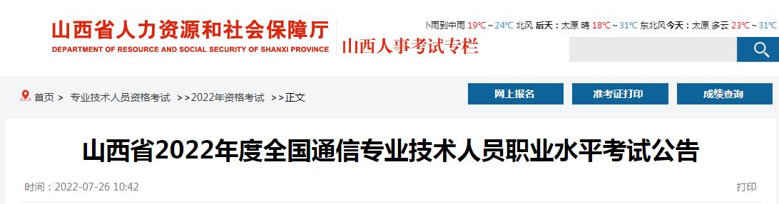 山西省2022年度全國通信專業(yè)技術(shù)人員職業(yè)水平考試公告