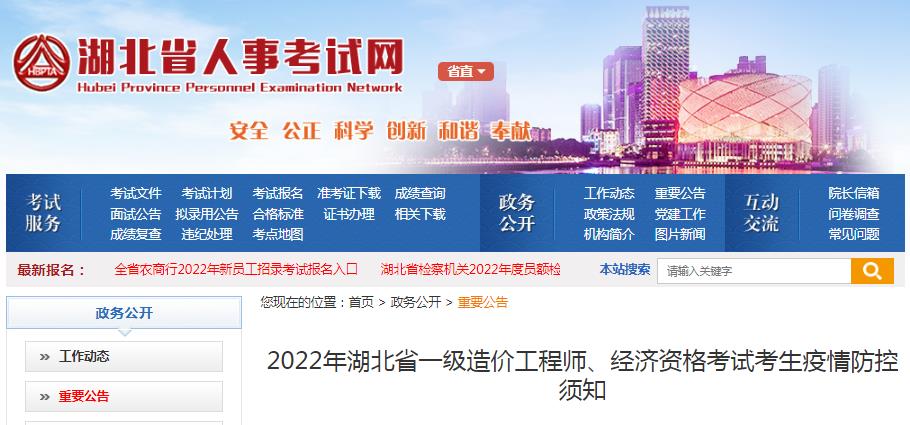 2022年湖北省一級(jí)造價(jià)工程師、經(jīng)濟(jì)資格考試考生疫情防控須知