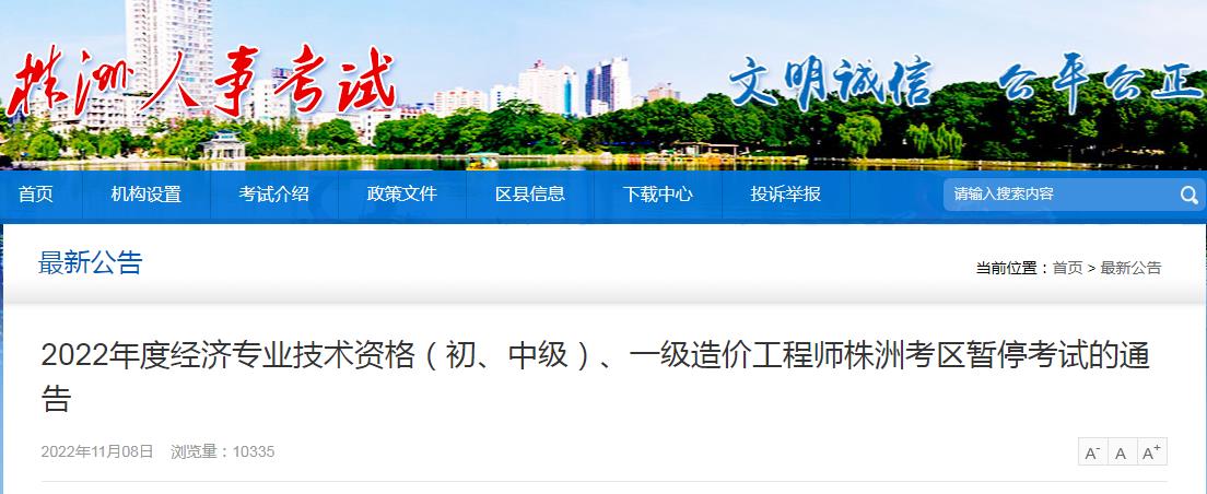 為全力做好新冠疫情防控工作,根據(jù)疫情防控工作需要,結(jié)合當(dāng)前我市疫情形勢,經(jīng)研究,決定株洲考區(qū)暫停原定于11月12日、13日舉行的2022年度經(jīng)濟(jì)專業(yè)技術(shù)資格(初、中級)、一級造價工程師考試。