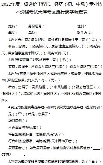 2022年度一級造價工程師、經(jīng)濟(初、中級)專業(yè)技術資格考試天津考區(qū)流行病學調(diào)查表
