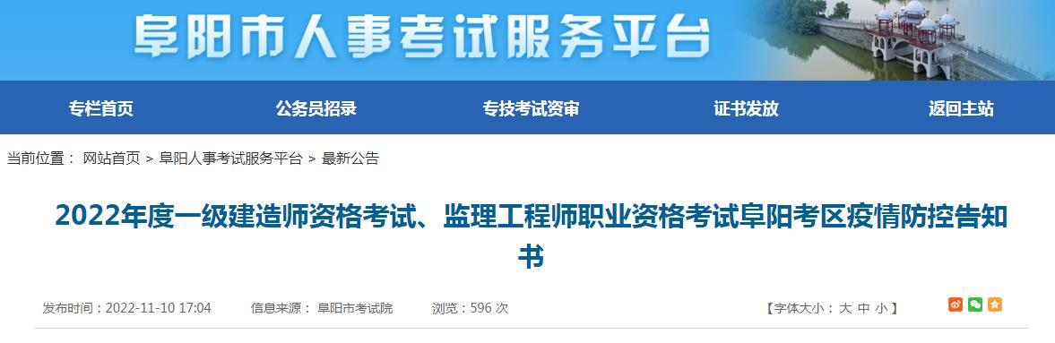 2022年度一級建造師資格考試、監(jiān)理工程師職業(yè)資格考試阜陽考區(qū)疫情防控告知書