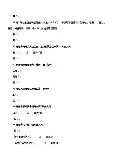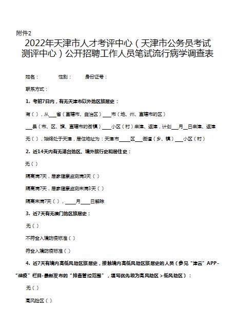 2022年天津市人才考評中心(天津市公務(wù)員考試測評中心)公開招聘工作人員筆試流行病學調(diào)查表
