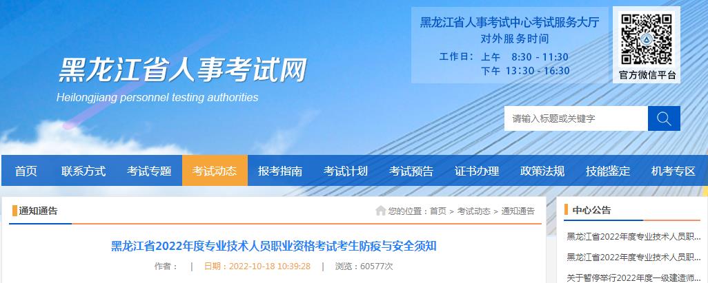 黑龍江省2022年度專業(yè)技術(shù)人員職業(yè)資格考試考生防疫與安全須知