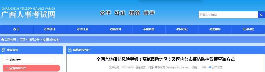 考生可通過 “國務(wù)院客戶端”小程序的“各地疫情防控政策”和 “智桂通”小程序的“疫情防控”選擇“各地出行政策”版塊查詢,以及通過“貴港疾控”微信公眾號(hào)查詢,或打電話到貴港市疾控中心(0775-2939700)咨詢。崇左市: