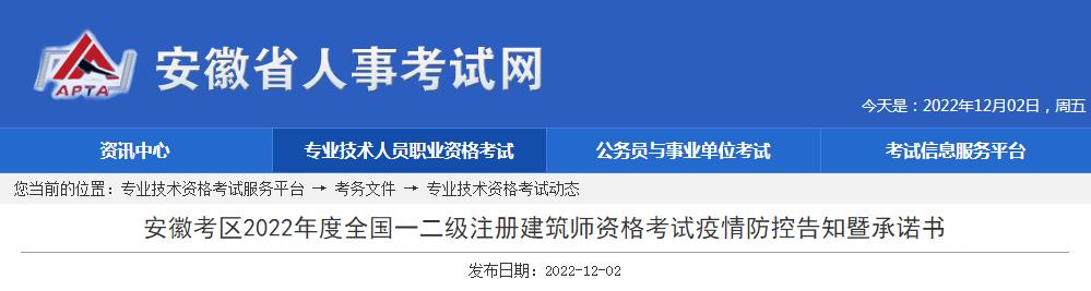 安徽考區(qū)2022年度全國(guó)一二級(jí)注冊(cè)建筑師資格考試疫情防控告知暨承諾書(shū)