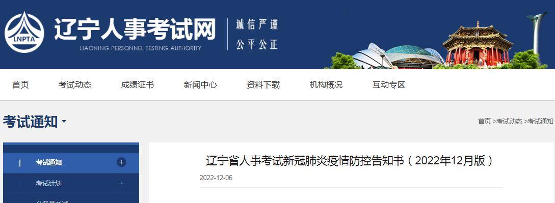 遼寧省人事考試新冠肺炎疫情防控告知書(2022年12月版)