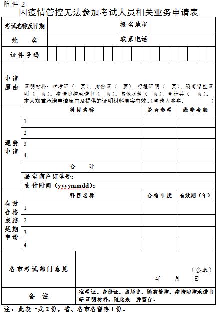 2.因疫情管控無法參加考試人員相關業(yè)務申請表